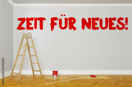 Zeit für Neues an Wand in Wohnung als Veränderung Konzept