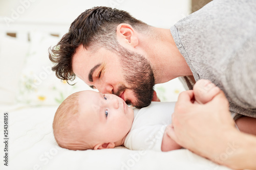 Liebevoller Vater gibt seinem Baby einen Kuss