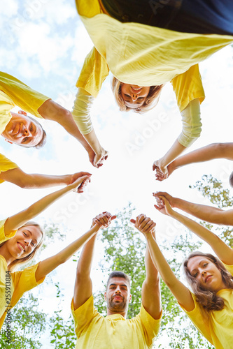 Gruppe beim Hände halten als Kooperation Konzept