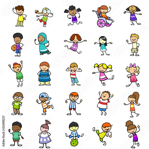 Multikulturelle Kinder als Cartoon Icons Gruppe