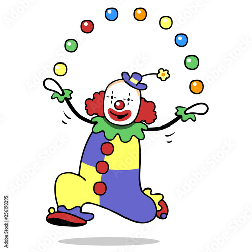 Bunter Cartoon Clown im Zirkus beim Jonglieren