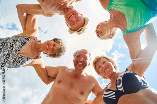 Happy seniors in summer vacation in the circle