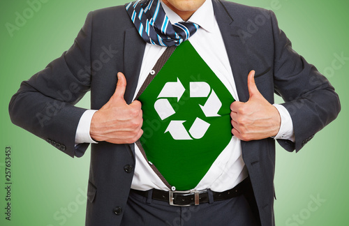 Recycyling Konzept mit Mann der sein Hemd öffnet