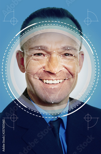Lächelnder Geschäftsmann lehnt an imaginärer Wand