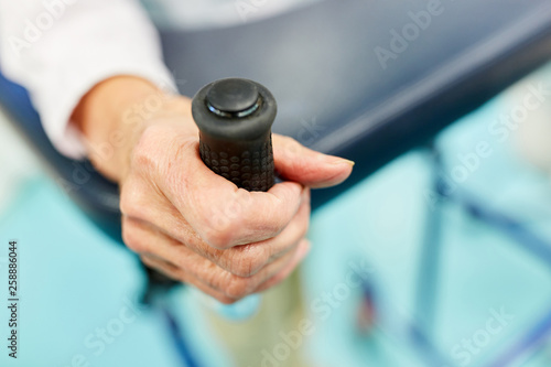 Silhouetten von Menschen im Alter mit Gehhilfe und Rollstuhl in der Reha