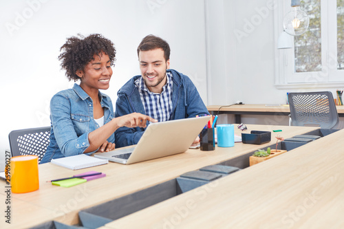 Internet start-up team has fun on the laptop
