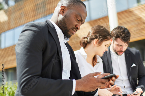Panorama aus Silhouetten von Geschäftsleuten vor bunten Business Portraits