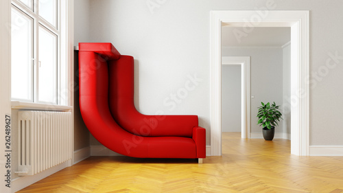Elefant in Wohnung als Platzmangel und Haustier Konzept