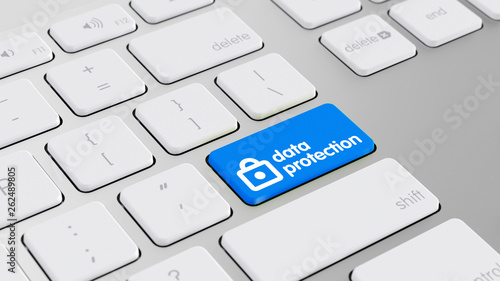 Datenschutz Konzept mit blauer Taste auf Tastatur