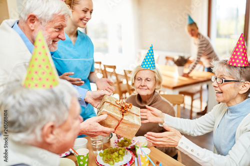 Altenpflegerin hat Spaß mit Gruppe Senioren