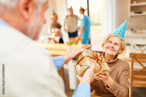 Altenpflegerin hat Spaß mit Gruppe Senioren
