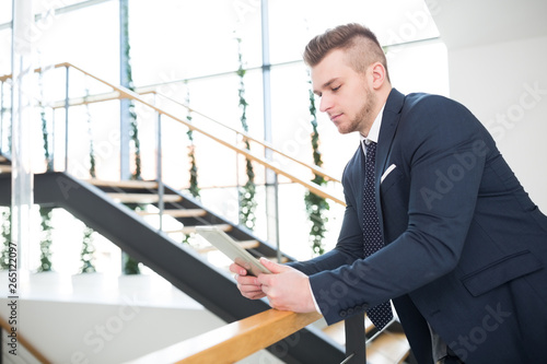 Geschäftsmann bedient Touchscreen am Tablet PC