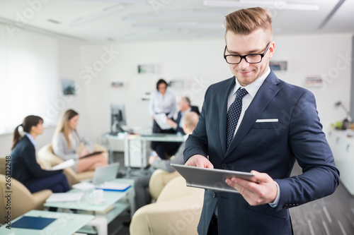 Geschäftsmann bedient Touchscreen am Tablet PC