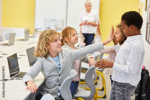 Gruppe Kinder in Grundschule bei Computer Unterricht