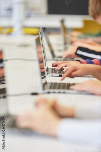 Kinder am Laptop in einer Computer Klasse