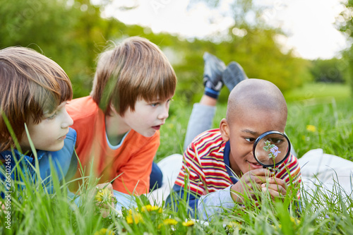 Kinder betrachten Natur mit der Lupe