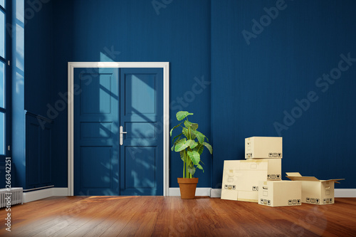 Umzugskartons beim Umzug in einem leeren Raum