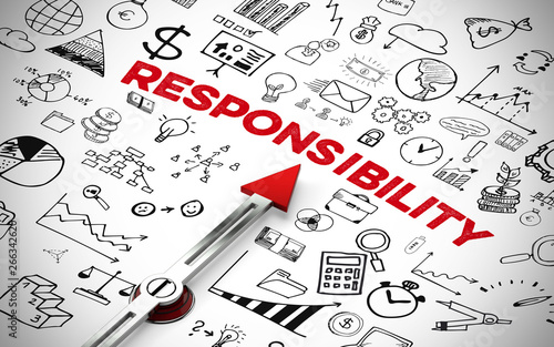 Englischer Slogan "responsability" (Verantwortung) mit Icons