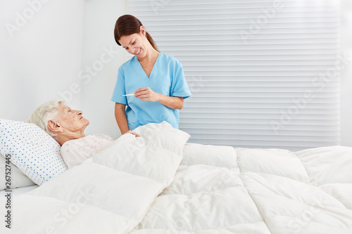 Altenpfleger kümmert sich im Hospiz um Seniorin