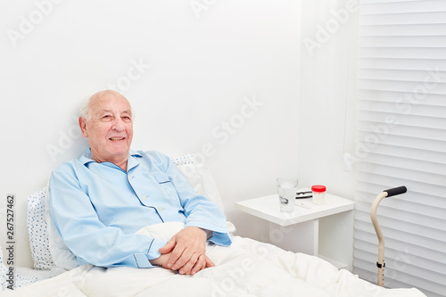 Senior liegt bettlägerig im Bett im Krankenhaus