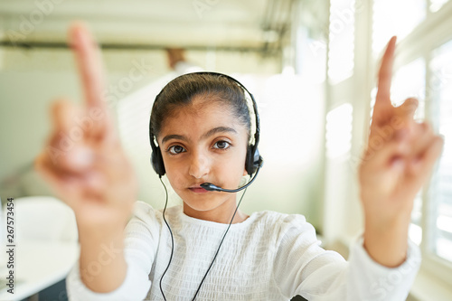 Business Frau als Telefonistin und Kundenbetreuer mit Headset