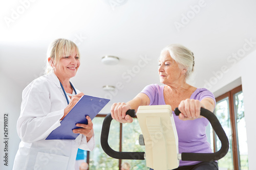 Senior Frau trainiert auf dem Ergometer
