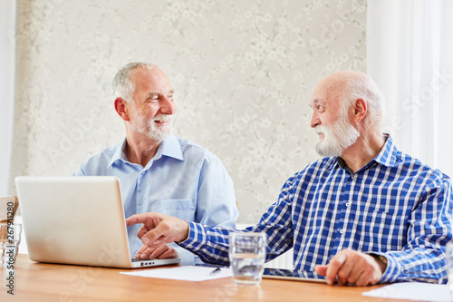 Zwei Senioren am Laptop Computer im Seniorenheim