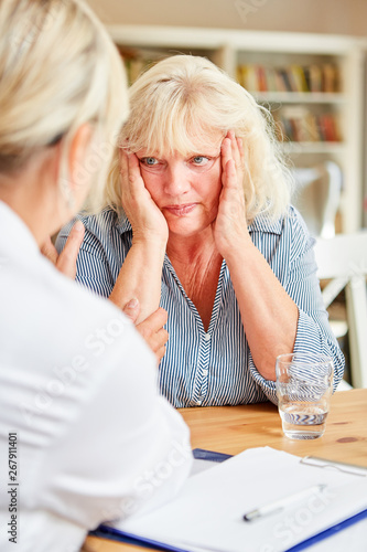 Senior Patient hört seiner Ärztin aufmerksam zu