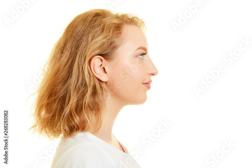 Junge Frau von der Seite als Ganzkörperaufnahme