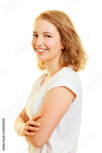 Junge Frau von der Seite als Ganzkörperaufnahme