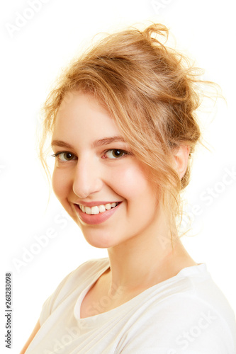 Junge Frau von der Seite als Ganzkörperaufnahme