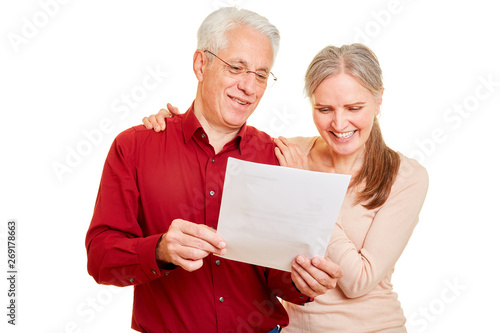 Paar Senioren mit Brief mit schlechten Nachrichten