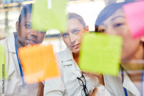 Ärzteteam bei der Analyse von Ideen auf Haftnotizen