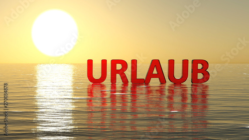 Urlaub Konzept mit Slogan auf Meer mit Sonnenuntergang
