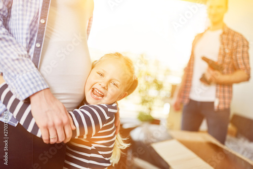 Tochter umarmt schwangere Mutter mit Babybauch
