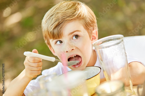 Gruppe Kinder essen gemeinsam Müsli zum Frühstück