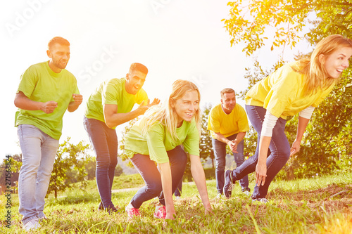 Team gemeinsam am Start bei Sport Wettkampf auf Sportfest
