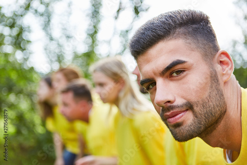 Team gemeinsam am Start bei Sport Wettkampf auf Sportfest