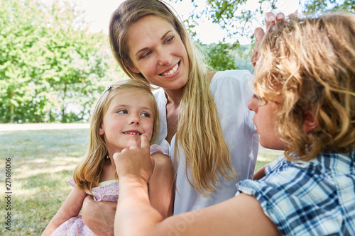 Happy mother with two kids in the park