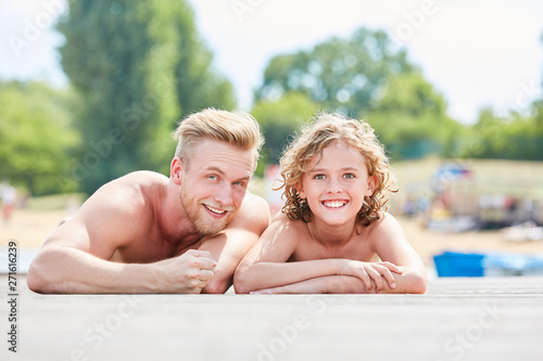 Familie zeigt bunte Zeichnung mit Eigenheim