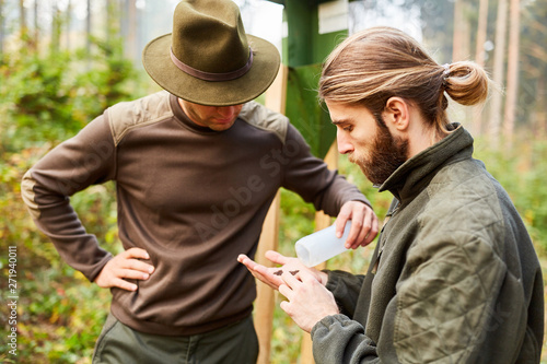 Revierförster und Praktikant zusammen im Wald