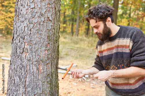 Forstwirt mit Zuwachsbohrer bei Erregeridentifikation