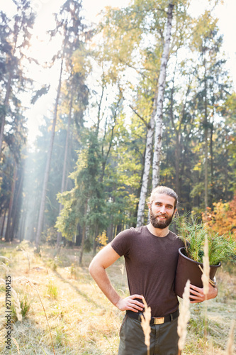 Stolzer Forstwirt mit Kiefer Setzlingen