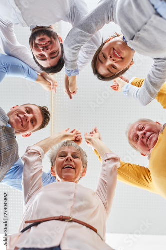 Pfeil vor Mitarbeiter Portraits als Unternehmenswachstum Konzept