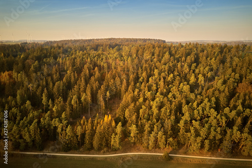Hiking trail on mountain with forest in sunlight (Generative AI)