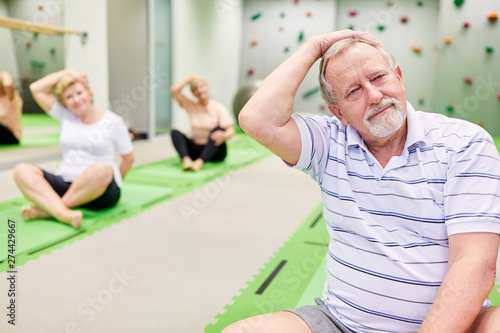 Gruppe Senioren auf Yogamatten beim Rehasport