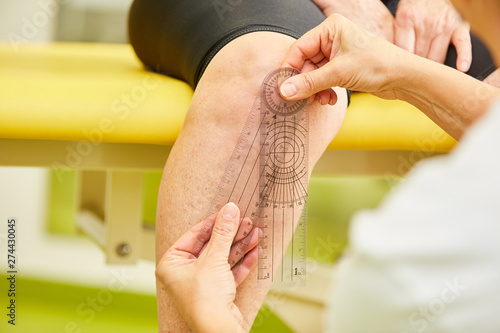 Physiotherapeut misst die Mobilität im Kniegelenk