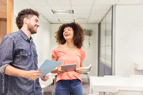 Zwei junge Business Kollegen flirten miteinander