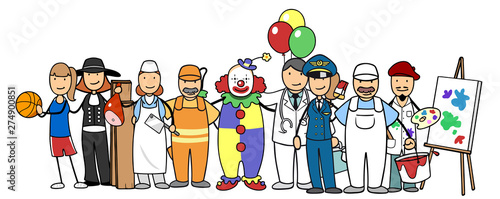 Gruppe Leute mit verschiedenen Berufen hält Schild