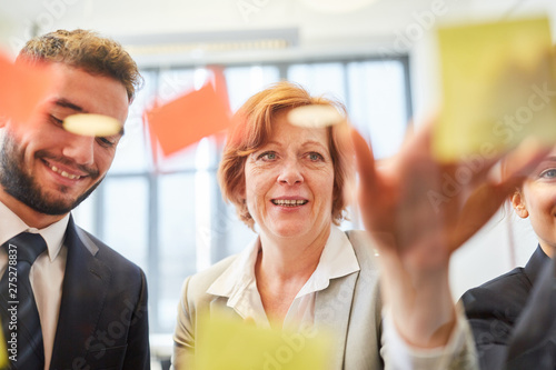 Geschäftsleute beim Brainstorming mit Haftnotizen